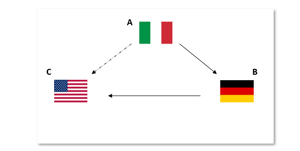 Nel caso pratico di seguito riportato sarà analizzato uno scenario di triangolazione intracomunitaria impropria, dove il primo cedente nazionale (IT) vende merce ad un soggetto comunitario (DE), promotore della triangolazione; quest’ultimo effettuerà una seconda cessione nei confronti di un soggetto Extra-Ue (US), destinatario della merce.