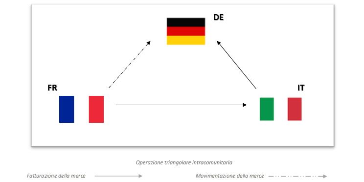 Nell’operazione di seguito illustrata, una società italiana acquista beni da una società francese, e rivende gli stessi ad un soggetto tedesco.